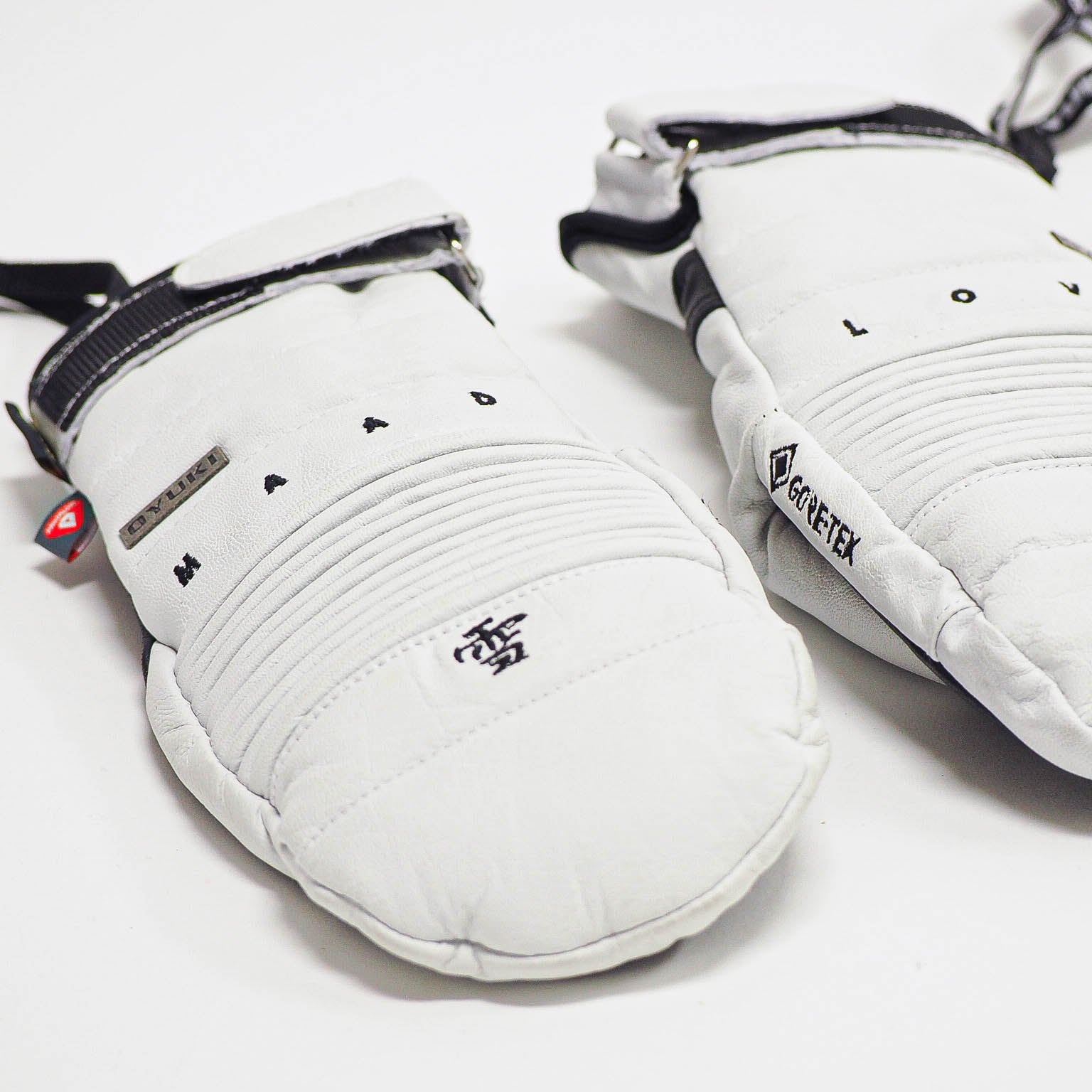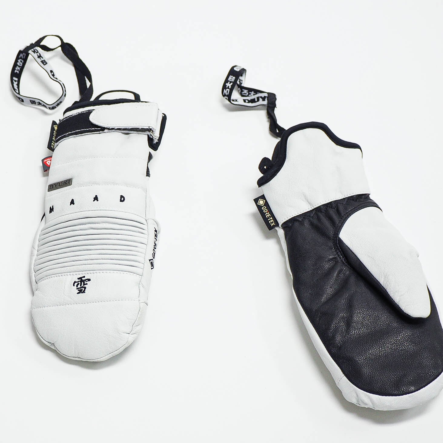 Our mitts membrane is made of GORE-TEX waterproof breathable insert to keep you 100% dry™. Maad's mitt have a PrimaLoft® Gold insulation to keep you real warm and we used a black premium water resistant goatskin leather for the palms. They come in an option of two colorway of White, Payaya Orange and Japan red.